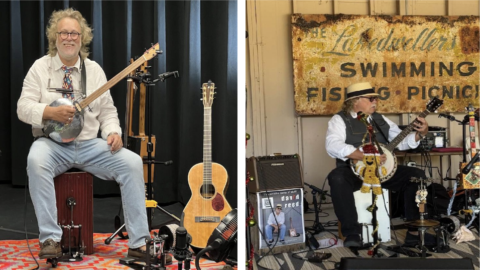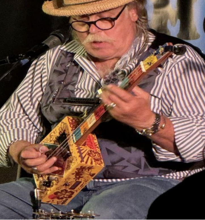 Not only is David a seasoned performer with seven CD recordings under his belt, but he also builds wonderfully unique and quirky cigar guitars under the aegis of “Dr. Easy’s Sonic Boxes” from which he delivers his personal brand of tasty, slip-slidin’ juke joint country blues & smokehouse rock. This concert will primarily feature his unique, handmade cigar box guitars…but he promised that there’ll be some guitar & banjo pickin’, harp blowin’, foot stompin, plenty of caterwauling . . . and a conch shell!